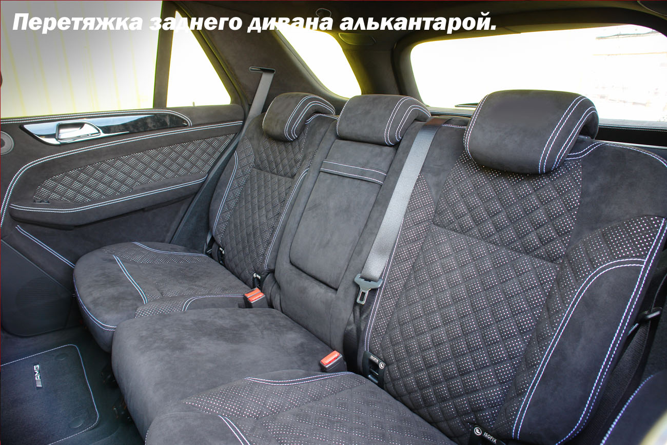 - Алькантара. Обшивка алькантарой выглядит элегантно и роскошно, и сидеть на таком заднем диване очень приятно. Она долго не потеряет вид, очень прочна и с нее легко удаляются любые загрязнения.