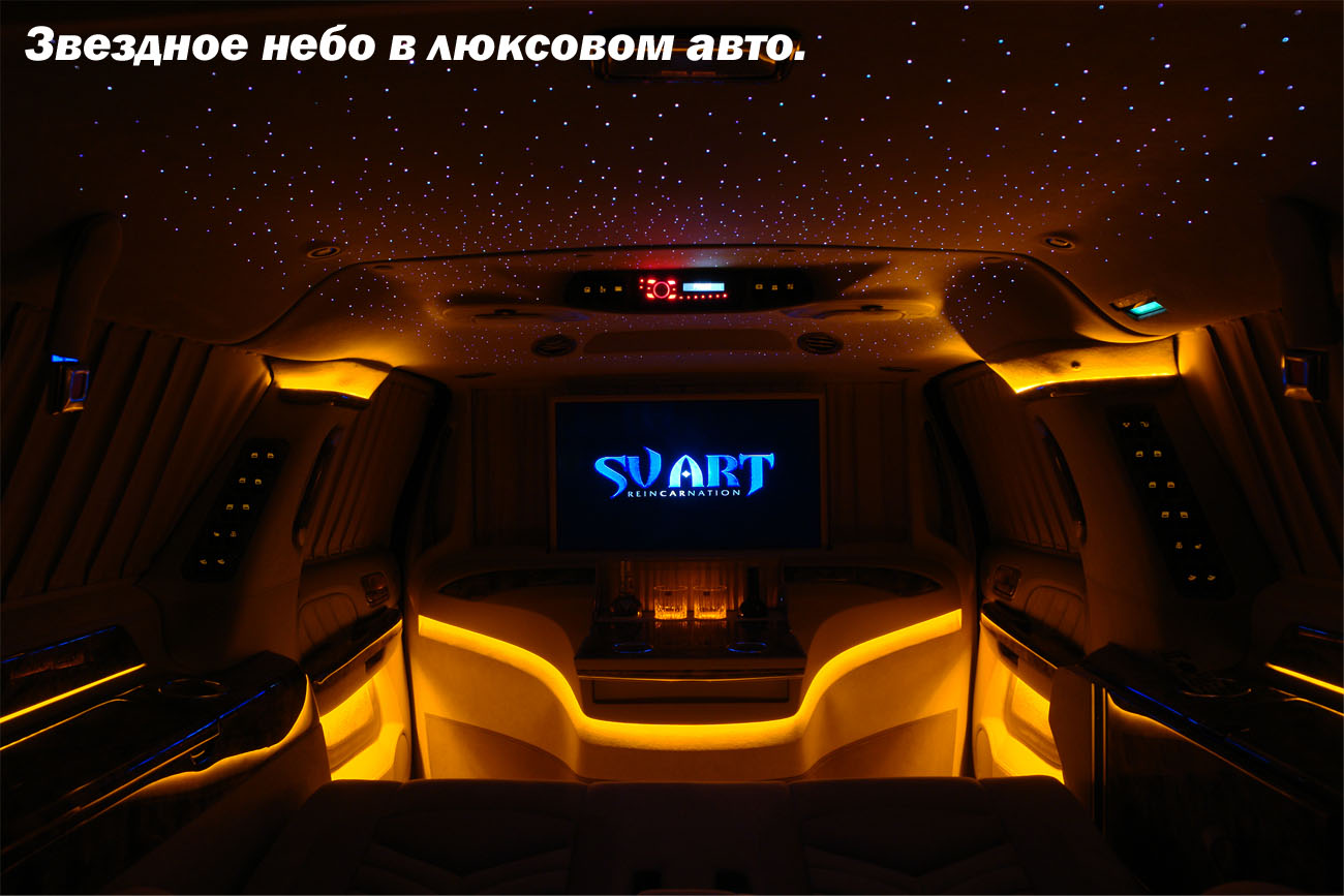 Автомобили премиум-класса по своему определению выделяются среди своих собратьев из низших классов, прежде всего, дороговизной и элегантностью, а также поражают эксклюзивным оформлением вплоть до мельчайших деталей. Чего только стоит такая опция, как «Звездное небо» в салоне, когда тысячи огней переливаются яркими цветами, создавая изысканную атмосферу романтики. Выполнить такую уникальную вариацию оформления интерьера салона, как «Звездное небо» помогут специалисты тюнинг-салона SV-ART в г. Москва – для нас не проблема подарить Вашему люксовому «четырехколесному другу» роскошество в виде тысячи звезд и десятков созвездий. Если Вы желаете добавить оригинальности и индивидуальности своему автомобилю, тогда эта статья именно для Вас!